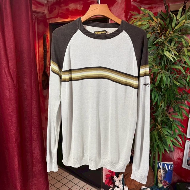 ビラボンのコットンニット サーフ系の本気を見た この配色に左のアームにはステューシー字体でビラボン刺繍 これはまずいな〜。 【billabong】 Size L 肩幅 49cm 身幅 49cm 袖丈 58cm 着丈 72cm ¥8,580 in tax