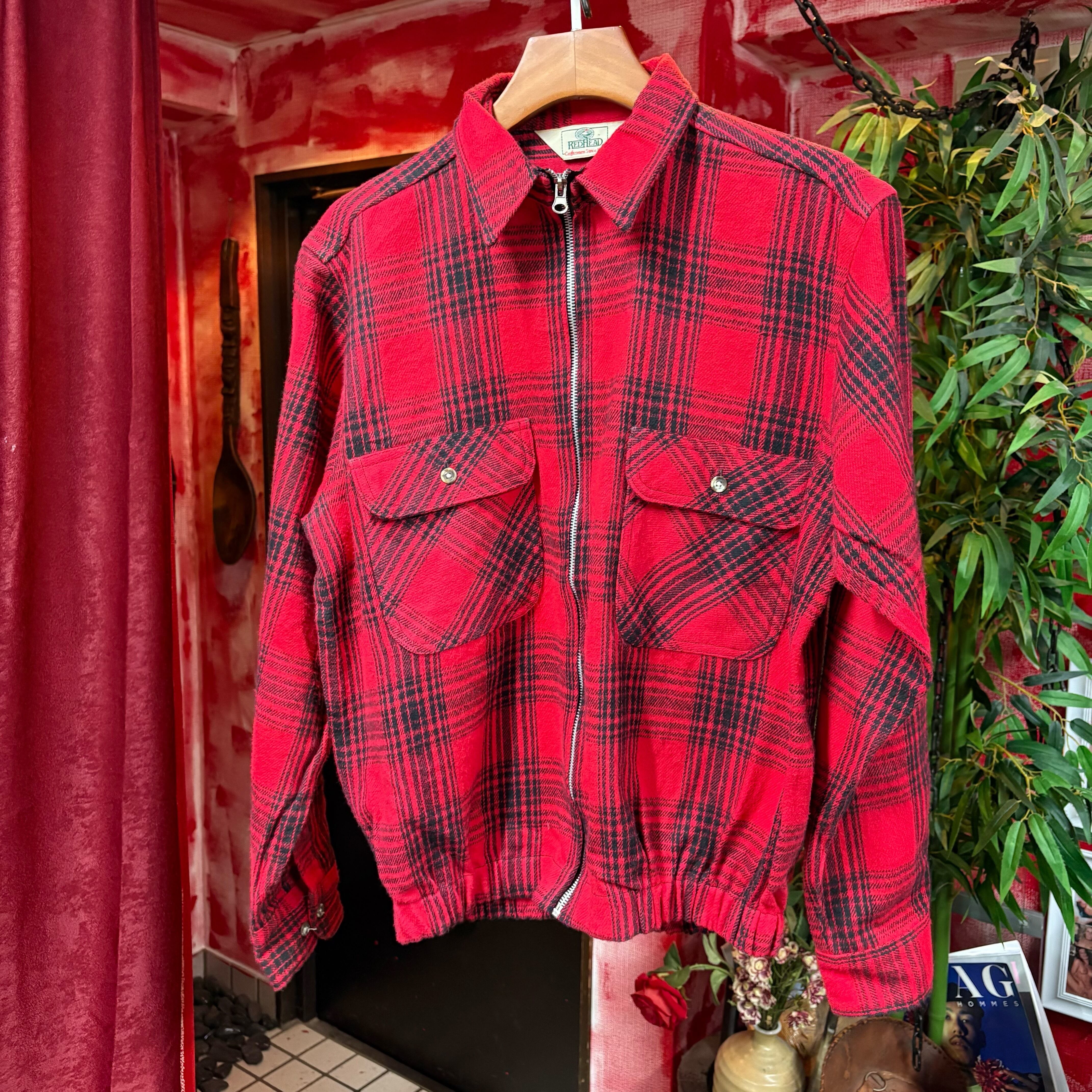 flannel zip-up shirt Red